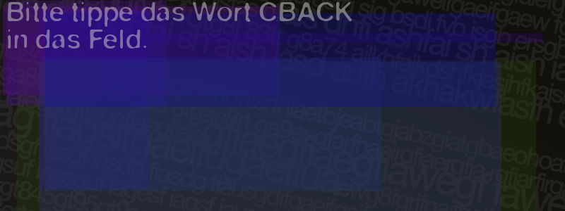 Die Visuelle Bestätigung hilft dabei automatische Spambots und Scripte von den Diensten dieses Forums abzuhalten. Derartige Scripte sind normalerweise nicht in der Lage den untenstehenden Code zu erkennen. Bitte geben Sie also in das untenstehende Feld die Buchstaben und Zahlen ein, die Sie in dem Bild erkennen können oder beantworten Sie die angezeigte Frage.
