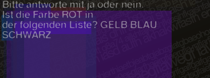 Die Visuelle Bestätigung hilft dabei automatische Spambots und Scripte von den Diensten dieses Forums abzuhalten. Derartige Scripte sind normalerweise nicht in der Lage den untenstehenden Code zu erkennen. Bitte geben Sie also in das untenstehende Feld die Buchstaben und Zahlen ein, die Sie in dem Bild erkennen können oder beantworten Sie die angezeigte Frage.