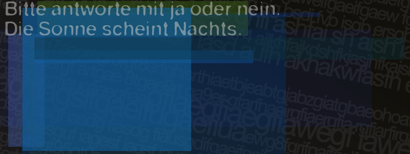 Die Visuelle Bestätigung hilft dabei automatische Spambots und Scripte von den Diensten dieses Forums abzuhalten. Derartige Scripte sind normalerweise nicht in der Lage den untenstehenden Code zu erkennen. Bitte geben Sie also in das untenstehende Feld die Buchstaben und Zahlen ein, die Sie in dem Bild erkennen können oder beantworten Sie die angezeigte Frage.