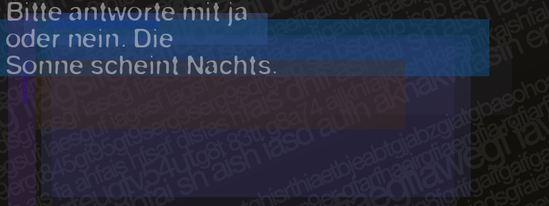Die Visuelle Bestätigung hilft dabei automatische Spambots und Scripte von den Diensten dieses Forums abzuhalten. Derartige Scripte sind normalerweise nicht in der Lage den untenstehenden Code zu erkennen. Bitte geben Sie also in das untenstehende Feld die Buchstaben und Zahlen ein, die Sie in dem Bild erkennen können oder beantworten Sie die angezeigte Frage.
