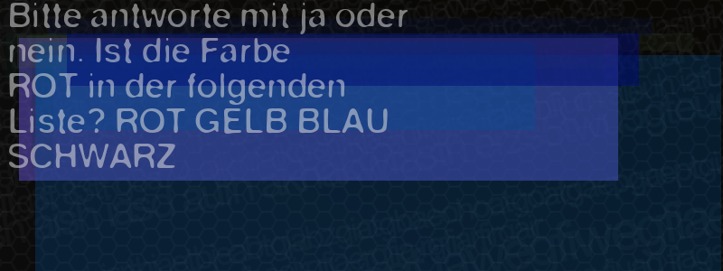 Die Visuelle Bestätigung hilft dabei automatische Spambots und Scripte von den Diensten dieses Forums abzuhalten. Derartige Scripte sind normalerweise nicht in der Lage den untenstehenden Code zu erkennen. Bitte geben Sie also in das untenstehende Feld die Buchstaben und Zahlen ein, die Sie in dem Bild erkennen können oder beantworten Sie die angezeigte Frage.