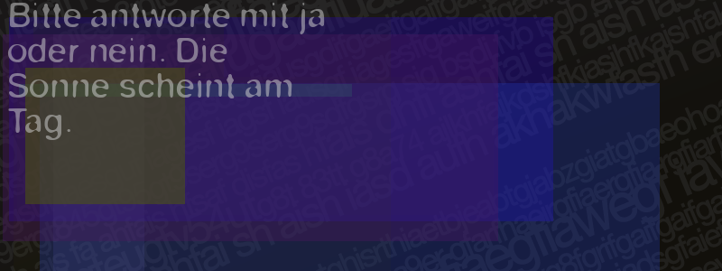 Die Visuelle Bestätigung hilft dabei automatische Spambots und Scripte von den Diensten dieses Forums abzuhalten. Derartige Scripte sind normalerweise nicht in der Lage den untenstehenden Code zu erkennen. Bitte geben Sie also in das untenstehende Feld die Buchstaben und Zahlen ein, die Sie in dem Bild erkennen können oder beantworten Sie die angezeigte Frage.