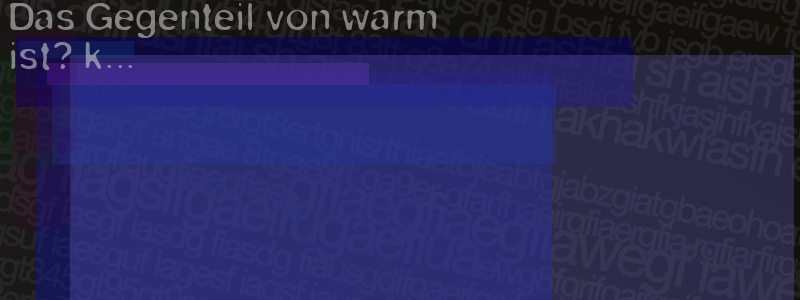 Die Visuelle Bestätigung hilft dabei automatische Spambots und Scripte von den Diensten dieses Forums abzuhalten. Derartige Scripte sind normalerweise nicht in der Lage den untenstehenden Code zu erkennen. Bitte geben Sie also in das untenstehende Feld die Buchstaben und Zahlen ein, die Sie in dem Bild erkennen können oder beantworten Sie die angezeigte Frage.