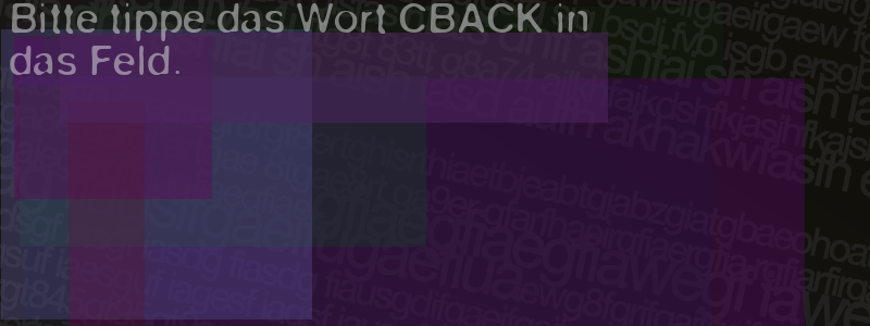 Die Visuelle Bestätigung hilft dabei automatische Spambots und Scripte von den Diensten dieses Forums abzuhalten. Derartige Scripte sind normalerweise nicht in der Lage den untenstehenden Code zu erkennen. Bitte geben Sie also in das untenstehende Feld die Buchstaben und Zahlen ein, die Sie in dem Bild erkennen können oder beantworten Sie die angezeigte Frage.