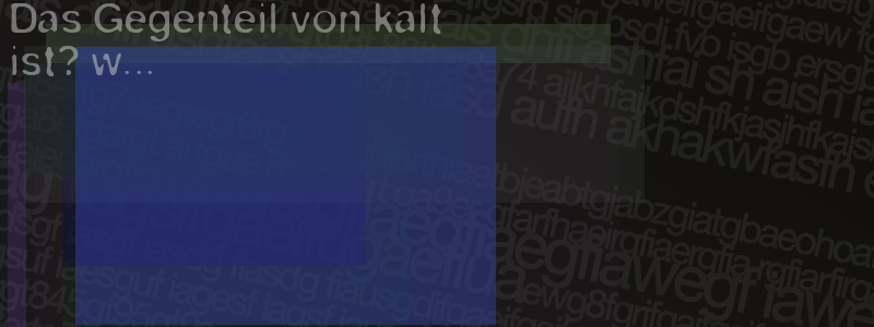 Die Visuelle Bestätigung hilft dabei automatische Spambots und Scripte von den Diensten dieses Forums abzuhalten. Derartige Scripte sind normalerweise nicht in der Lage den untenstehenden Code zu erkennen. Bitte geben Sie also in das untenstehende Feld die Buchstaben und Zahlen ein, die Sie in dem Bild erkennen können oder beantworten Sie die angezeigte Frage.