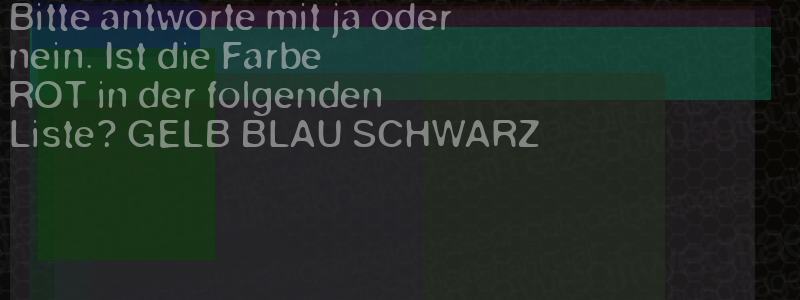 Die Visuelle Bestätigung hilft dabei automatische Spambots und Scripte von den Diensten dieses Forums abzuhalten. Derartige Scripte sind normalerweise nicht in der Lage den untenstehenden Code zu erkennen. Bitte geben Sie also in das untenstehende Feld die Buchstaben und Zahlen ein, die Sie in dem Bild erkennen können oder beantworten Sie die angezeigte Frage.