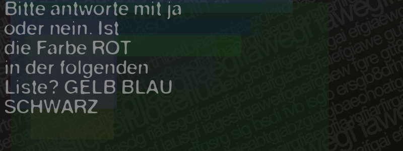 Die Visuelle Bestätigung hilft dabei automatische Spambots und Scripte von den Diensten dieses Forums abzuhalten. Derartige Scripte sind normalerweise nicht in der Lage den untenstehenden Code zu erkennen. Bitte geben Sie also in das untenstehende Feld die Buchstaben und Zahlen ein, die Sie in dem Bild erkennen können oder beantworten Sie die angezeigte Frage.