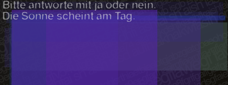 Die Visuelle Bestätigung hilft dabei automatische Spambots und Scripte von den Diensten dieses Forums abzuhalten. Derartige Scripte sind normalerweise nicht in der Lage den untenstehenden Code zu erkennen. Bitte geben Sie also in das untenstehende Feld die Buchstaben und Zahlen ein, die Sie in dem Bild erkennen können oder beantworten Sie die angezeigte Frage.