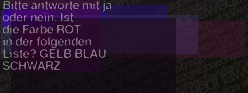 Die Visuelle Bestätigung hilft dabei automatische Spambots und Scripte von den Diensten dieses Forums abzuhalten. Derartige Scripte sind normalerweise nicht in der Lage den untenstehenden Code zu erkennen. Bitte geben Sie also in das untenstehende Feld die Buchstaben und Zahlen ein, die Sie in dem Bild erkennen können oder beantworten Sie die angezeigte Frage.