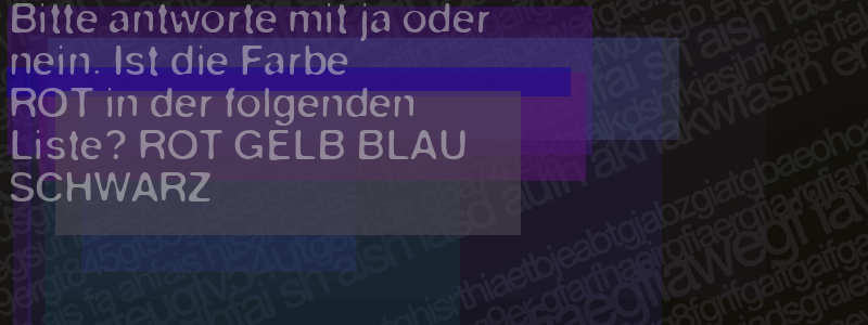 Die Visuelle Bestätigung hilft dabei automatische Spambots und Scripte von den Diensten dieses Forums abzuhalten. Derartige Scripte sind normalerweise nicht in der Lage den untenstehenden Code zu erkennen. Bitte geben Sie also in das untenstehende Feld die Buchstaben und Zahlen ein, die Sie in dem Bild erkennen können oder beantworten Sie die angezeigte Frage.