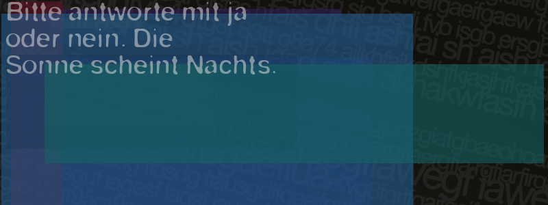 Die Visuelle Bestätigung hilft dabei automatische Spambots und Scripte von den Diensten dieses Forums abzuhalten. Derartige Scripte sind normalerweise nicht in der Lage den untenstehenden Code zu erkennen. Bitte geben Sie also in das untenstehende Feld die Buchstaben und Zahlen ein, die Sie in dem Bild erkennen können oder beantworten Sie die angezeigte Frage.