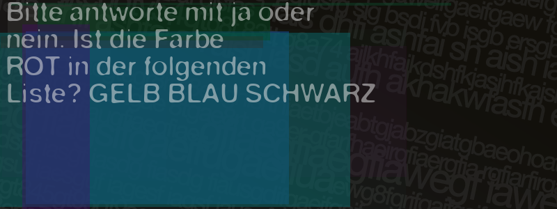 Die Visuelle Bestätigung hilft dabei automatische Spambots und Scripte von den Diensten dieses Forums abzuhalten. Derartige Scripte sind normalerweise nicht in der Lage den untenstehenden Code zu erkennen. Bitte geben Sie also in das untenstehende Feld die Buchstaben und Zahlen ein, die Sie in dem Bild erkennen können oder beantworten Sie die angezeigte Frage.