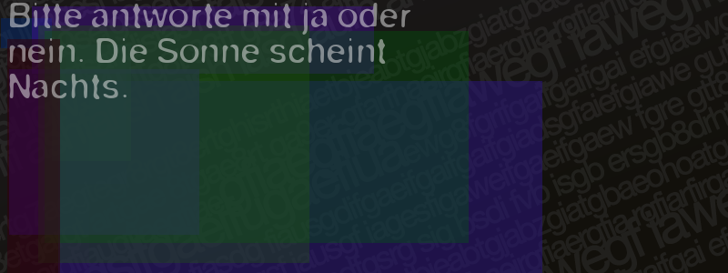 Die Visuelle Bestätigung hilft dabei automatische Spambots und Scripte von den Diensten dieses Forums abzuhalten. Derartige Scripte sind normalerweise nicht in der Lage den untenstehenden Code zu erkennen. Bitte geben Sie also in das untenstehende Feld die Buchstaben und Zahlen ein, die Sie in dem Bild erkennen können oder beantworten Sie die angezeigte Frage.