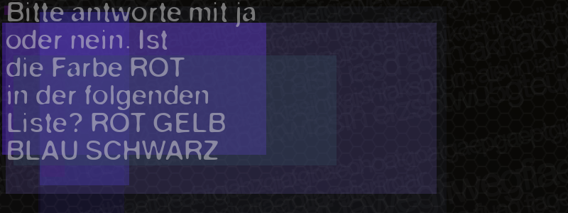Die Visuelle Bestätigung hilft dabei automatische Spambots und Scripte von den Diensten dieses Forums abzuhalten. Derartige Scripte sind normalerweise nicht in der Lage den untenstehenden Code zu erkennen. Bitte geben Sie also in das untenstehende Feld die Buchstaben und Zahlen ein, die Sie in dem Bild erkennen können oder beantworten Sie die angezeigte Frage.