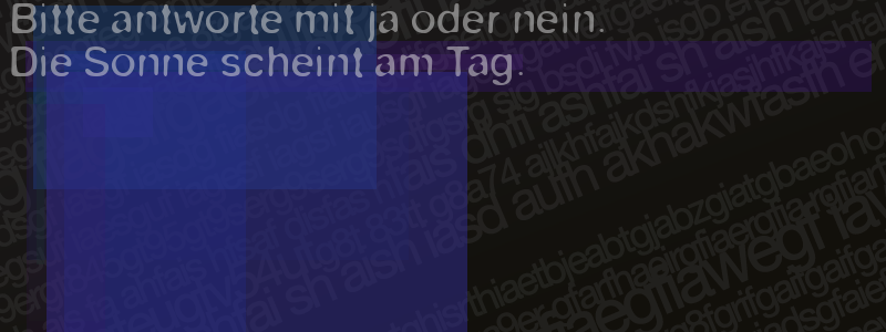 Die Visuelle Bestätigung hilft dabei automatische Spambots und Scripte von den Diensten dieses Forums abzuhalten. Derartige Scripte sind normalerweise nicht in der Lage den untenstehenden Code zu erkennen. Bitte geben Sie also in das untenstehende Feld die Buchstaben und Zahlen ein, die Sie in dem Bild erkennen können oder beantworten Sie die angezeigte Frage.