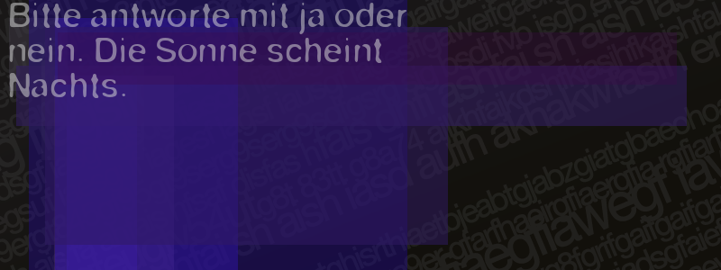Die Visuelle Bestätigung hilft dabei automatische Spambots und Scripte von den Diensten dieses Forums abzuhalten. Derartige Scripte sind normalerweise nicht in der Lage den untenstehenden Code zu erkennen. Bitte geben Sie also in das untenstehende Feld die Buchstaben und Zahlen ein, die Sie in dem Bild erkennen können oder beantworten Sie die angezeigte Frage.