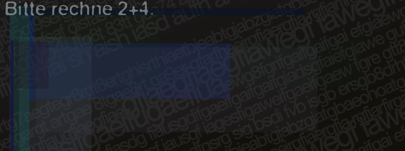 Die Visuelle Bestätigung hilft dabei automatische Spambots und Scripte von den Diensten dieses Forums abzuhalten. Derartige Scripte sind normalerweise nicht in der Lage den untenstehenden Code zu erkennen. Bitte geben Sie also in das untenstehende Feld die Buchstaben und Zahlen ein, die Sie in dem Bild erkennen können oder beantworten Sie die angezeigte Frage.
