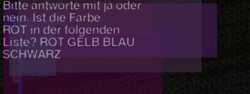 Die Visuelle Bestätigung hilft dabei automatische Spambots und Scripte von den Diensten dieses Forums abzuhalten. Derartige Scripte sind normalerweise nicht in der Lage den untenstehenden Code zu erkennen. Bitte geben Sie also in das untenstehende Feld die Buchstaben und Zahlen ein, die Sie in dem Bild erkennen können oder beantworten Sie die angezeigte Frage.