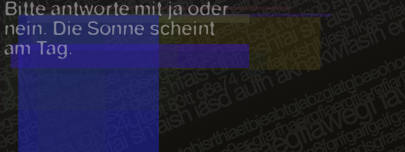 Die Visuelle Bestätigung hilft dabei automatische Spambots und Scripte von den Diensten dieses Forums abzuhalten. Derartige Scripte sind normalerweise nicht in der Lage den untenstehenden Code zu erkennen. Bitte geben Sie also in das untenstehende Feld die Buchstaben und Zahlen ein, die Sie in dem Bild erkennen können oder beantworten Sie die angezeigte Frage.