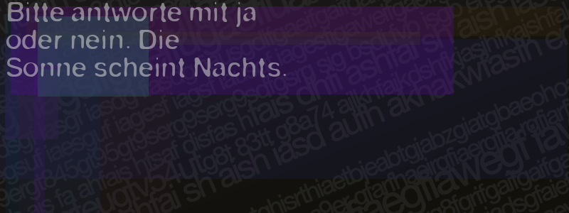 Die Visuelle Bestätigung hilft dabei automatische Spambots und Scripte von den Diensten dieses Forums abzuhalten. Derartige Scripte sind normalerweise nicht in der Lage den untenstehenden Code zu erkennen. Bitte geben Sie also in das untenstehende Feld die Buchstaben und Zahlen ein, die Sie in dem Bild erkennen können oder beantworten Sie die angezeigte Frage.