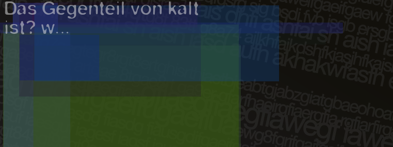 Die Visuelle Bestätigung hilft dabei automatische Spambots und Scripte von den Diensten dieses Forums abzuhalten. Derartige Scripte sind normalerweise nicht in der Lage den untenstehenden Code zu erkennen. Bitte geben Sie also in das untenstehende Feld die Buchstaben und Zahlen ein, die Sie in dem Bild erkennen können oder beantworten Sie die angezeigte Frage.