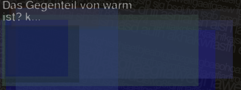 Die Visuelle Bestätigung hilft dabei automatische Spambots und Scripte von den Diensten dieses Forums abzuhalten. Derartige Scripte sind normalerweise nicht in der Lage den untenstehenden Code zu erkennen. Bitte geben Sie also in das untenstehende Feld die Buchstaben und Zahlen ein, die Sie in dem Bild erkennen können oder beantworten Sie die angezeigte Frage.