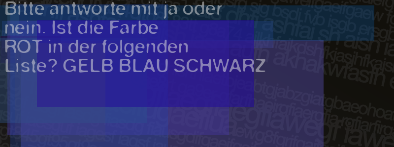 Die Visuelle Bestätigung hilft dabei automatische Spambots und Scripte von den Diensten dieses Forums abzuhalten. Derartige Scripte sind normalerweise nicht in der Lage den untenstehenden Code zu erkennen. Bitte geben Sie also in das untenstehende Feld die Buchstaben und Zahlen ein, die Sie in dem Bild erkennen können oder beantworten Sie die angezeigte Frage.