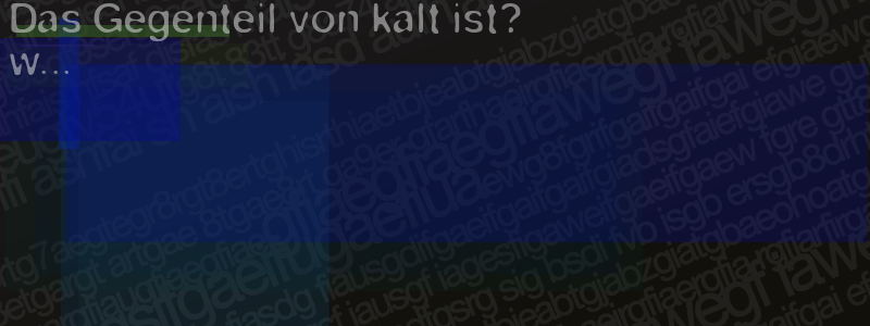 Die Visuelle Bestätigung hilft dabei automatische Spambots und Scripte von den Diensten dieses Forums abzuhalten. Derartige Scripte sind normalerweise nicht in der Lage den untenstehenden Code zu erkennen. Bitte geben Sie also in das untenstehende Feld die Buchstaben und Zahlen ein, die Sie in dem Bild erkennen können oder beantworten Sie die angezeigte Frage.
