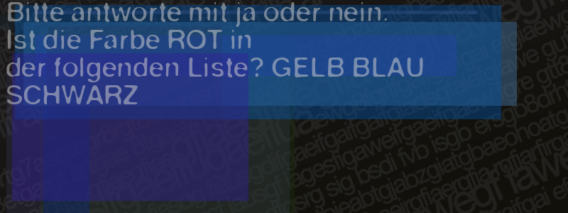 Die Visuelle Bestätigung hilft dabei automatische Spambots und Scripte von den Diensten dieses Forums abzuhalten. Derartige Scripte sind normalerweise nicht in der Lage den untenstehenden Code zu erkennen. Bitte geben Sie also in das untenstehende Feld die Buchstaben und Zahlen ein, die Sie in dem Bild erkennen können oder beantworten Sie die angezeigte Frage.