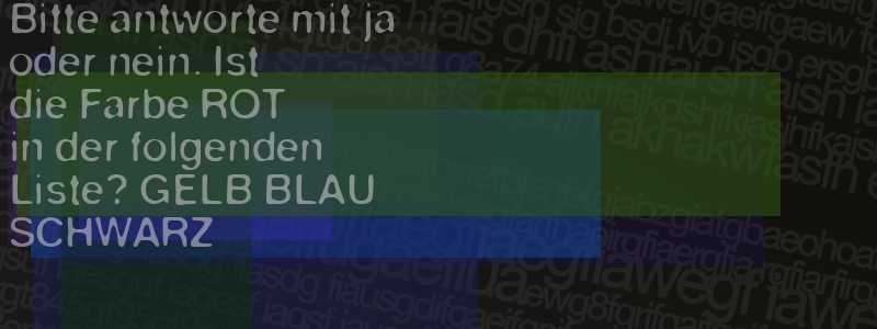 Die Visuelle Bestätigung hilft dabei automatische Spambots und Scripte von den Diensten dieses Forums abzuhalten. Derartige Scripte sind normalerweise nicht in der Lage den untenstehenden Code zu erkennen. Bitte geben Sie also in das untenstehende Feld die Buchstaben und Zahlen ein, die Sie in dem Bild erkennen können oder beantworten Sie die angezeigte Frage.