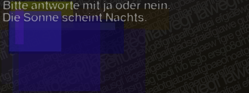 Die Visuelle Bestätigung hilft dabei automatische Spambots und Scripte von den Diensten dieses Forums abzuhalten. Derartige Scripte sind normalerweise nicht in der Lage den untenstehenden Code zu erkennen. Bitte geben Sie also in das untenstehende Feld die Buchstaben und Zahlen ein, die Sie in dem Bild erkennen können oder beantworten Sie die angezeigte Frage.