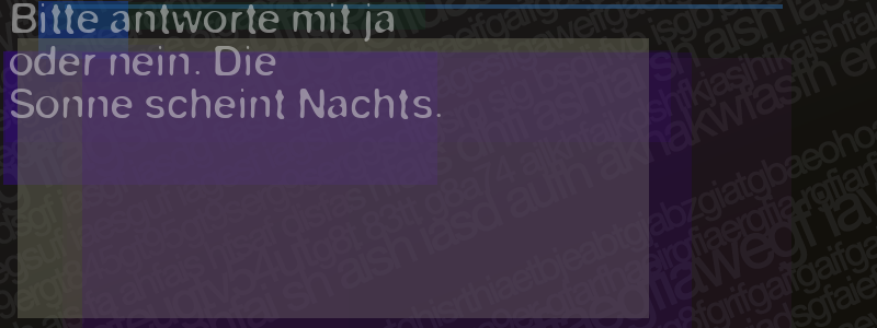 Die Visuelle Bestätigung hilft dabei automatische Spambots und Scripte von den Diensten dieses Forums abzuhalten. Derartige Scripte sind normalerweise nicht in der Lage den untenstehenden Code zu erkennen. Bitte geben Sie also in das untenstehende Feld die Buchstaben und Zahlen ein, die Sie in dem Bild erkennen können oder beantworten Sie die angezeigte Frage.