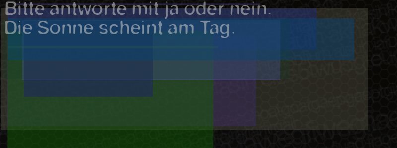 Die Visuelle Bestätigung hilft dabei automatische Spambots und Scripte von den Diensten dieses Forums abzuhalten. Derartige Scripte sind normalerweise nicht in der Lage den untenstehenden Code zu erkennen. Bitte geben Sie also in das untenstehende Feld die Buchstaben und Zahlen ein, die Sie in dem Bild erkennen können oder beantworten Sie die angezeigte Frage.