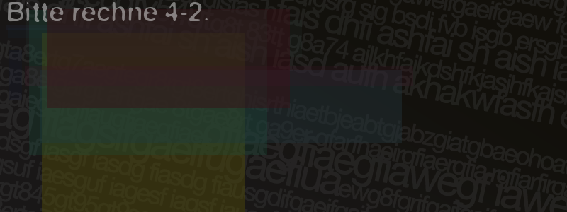 Die Visuelle Bestätigung hilft dabei automatische Spambots und Scripte von den Diensten dieses Forums abzuhalten. Derartige Scripte sind normalerweise nicht in der Lage den untenstehenden Code zu erkennen. Bitte geben Sie also in das untenstehende Feld die Buchstaben und Zahlen ein, die Sie in dem Bild erkennen können oder beantworten Sie die angezeigte Frage.