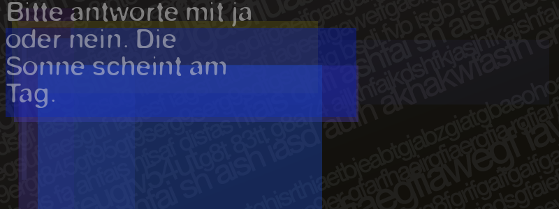 Die Visuelle Bestätigung hilft dabei automatische Spambots und Scripte von den Diensten dieses Forums abzuhalten. Derartige Scripte sind normalerweise nicht in der Lage den untenstehenden Code zu erkennen. Bitte geben Sie also in das untenstehende Feld die Buchstaben und Zahlen ein, die Sie in dem Bild erkennen können oder beantworten Sie die angezeigte Frage.