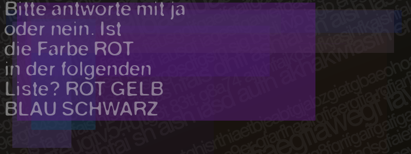 Die Visuelle Bestätigung hilft dabei automatische Spambots und Scripte von den Diensten dieses Forums abzuhalten. Derartige Scripte sind normalerweise nicht in der Lage den untenstehenden Code zu erkennen. Bitte geben Sie also in das untenstehende Feld die Buchstaben und Zahlen ein, die Sie in dem Bild erkennen können oder beantworten Sie die angezeigte Frage.