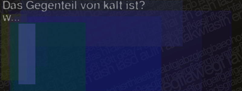 Die Visuelle Bestätigung hilft dabei automatische Spambots und Scripte von den Diensten dieses Forums abzuhalten. Derartige Scripte sind normalerweise nicht in der Lage den untenstehenden Code zu erkennen. Bitte geben Sie also in das untenstehende Feld die Buchstaben und Zahlen ein, die Sie in dem Bild erkennen können oder beantworten Sie die angezeigte Frage.