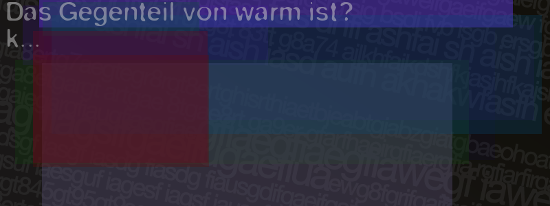 Die Visuelle Bestätigung hilft dabei automatische Spambots und Scripte von den Diensten dieses Forums abzuhalten. Derartige Scripte sind normalerweise nicht in der Lage den untenstehenden Code zu erkennen. Bitte geben Sie also in das untenstehende Feld die Buchstaben und Zahlen ein, die Sie in dem Bild erkennen können oder beantworten Sie die angezeigte Frage.