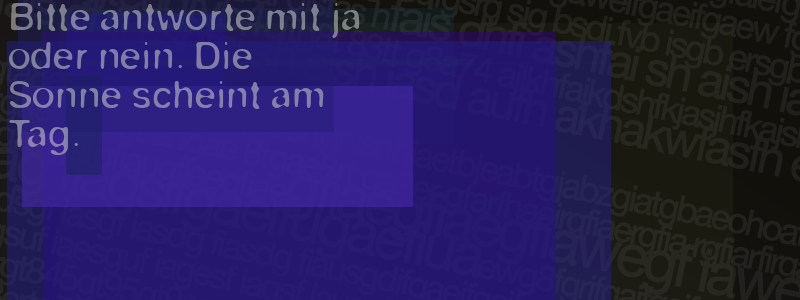 Die Visuelle Bestätigung hilft dabei automatische Spambots und Scripte von den Diensten dieses Forums abzuhalten. Derartige Scripte sind normalerweise nicht in der Lage den untenstehenden Code zu erkennen. Bitte geben Sie also in das untenstehende Feld die Buchstaben und Zahlen ein, die Sie in dem Bild erkennen können oder beantworten Sie die angezeigte Frage.