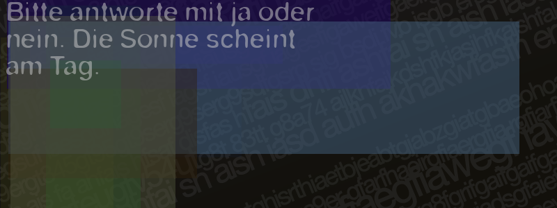 Die Visuelle Bestätigung hilft dabei automatische Spambots und Scripte von den Diensten dieses Forums abzuhalten. Derartige Scripte sind normalerweise nicht in der Lage den untenstehenden Code zu erkennen. Bitte geben Sie also in das untenstehende Feld die Buchstaben und Zahlen ein, die Sie in dem Bild erkennen können oder beantworten Sie die angezeigte Frage.