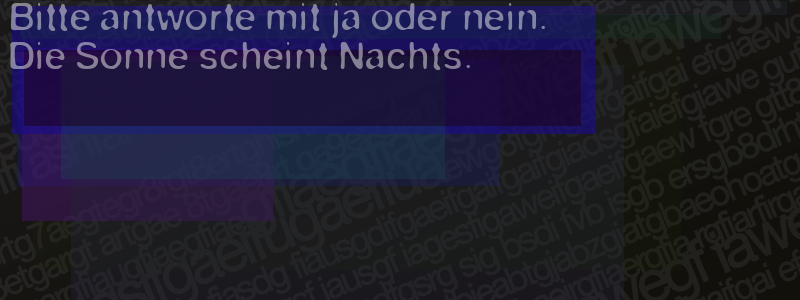 Die Visuelle Bestätigung hilft dabei automatische Spambots und Scripte von den Diensten dieses Forums abzuhalten. Derartige Scripte sind normalerweise nicht in der Lage den untenstehenden Code zu erkennen. Bitte geben Sie also in das untenstehende Feld die Buchstaben und Zahlen ein, die Sie in dem Bild erkennen können oder beantworten Sie die angezeigte Frage.