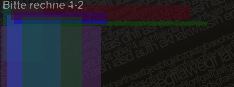 Die Visuelle Bestätigung hilft dabei automatische Spambots und Scripte von den Diensten dieses Forums abzuhalten. Derartige Scripte sind normalerweise nicht in der Lage den untenstehenden Code zu erkennen. Bitte geben Sie also in das untenstehende Feld die Buchstaben und Zahlen ein, die Sie in dem Bild erkennen können oder beantworten Sie die angezeigte Frage.