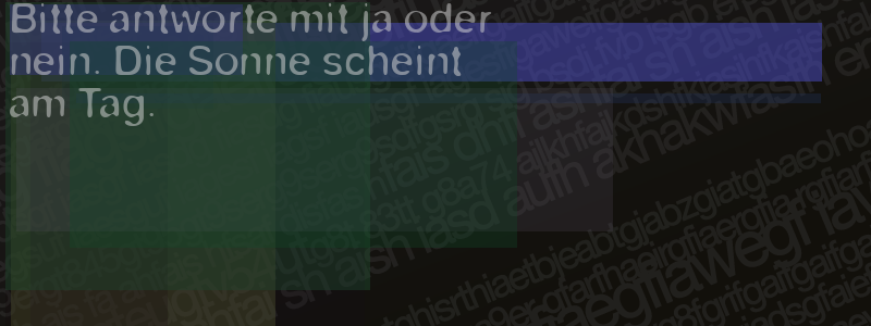 Die Visuelle Bestätigung hilft dabei automatische Spambots und Scripte von den Diensten dieses Forums abzuhalten. Derartige Scripte sind normalerweise nicht in der Lage den untenstehenden Code zu erkennen. Bitte geben Sie also in das untenstehende Feld die Buchstaben und Zahlen ein, die Sie in dem Bild erkennen können oder beantworten Sie die angezeigte Frage.