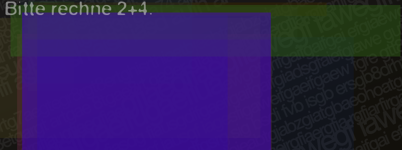 Die Visuelle Bestätigung hilft dabei automatische Spambots und Scripte von den Diensten dieses Forums abzuhalten. Derartige Scripte sind normalerweise nicht in der Lage den untenstehenden Code zu erkennen. Bitte geben Sie also in das untenstehende Feld die Buchstaben und Zahlen ein, die Sie in dem Bild erkennen können oder beantworten Sie die angezeigte Frage.