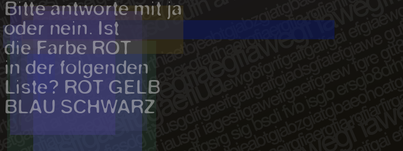 Die Visuelle Bestätigung hilft dabei automatische Spambots und Scripte von den Diensten dieses Forums abzuhalten. Derartige Scripte sind normalerweise nicht in der Lage den untenstehenden Code zu erkennen. Bitte geben Sie also in das untenstehende Feld die Buchstaben und Zahlen ein, die Sie in dem Bild erkennen können oder beantworten Sie die angezeigte Frage.
