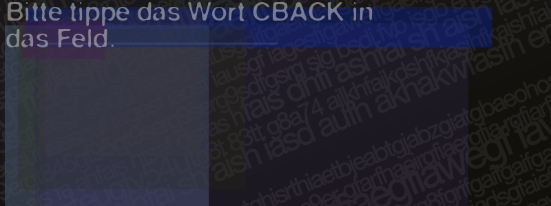 Die Visuelle Bestätigung hilft dabei automatische Spambots und Scripte von den Diensten dieses Forums abzuhalten. Derartige Scripte sind normalerweise nicht in der Lage den untenstehenden Code zu erkennen. Bitte geben Sie also in das untenstehende Feld die Buchstaben und Zahlen ein, die Sie in dem Bild erkennen können oder beantworten Sie die angezeigte Frage.