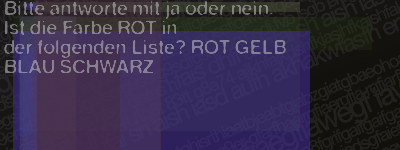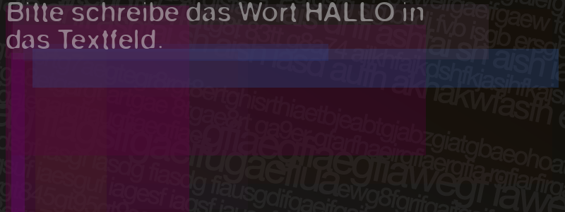 Die Visuelle Bestätigung hilft dabei automatische Spambots und Scripte von den Diensten dieses Forums abzuhalten. Derartige Scripte sind normalerweise nicht in der Lage den untenstehenden Code zu erkennen. Bitte geben Sie also in das untenstehende Feld die Buchstaben und Zahlen ein, die Sie in dem Bild erkennen können oder beantworten Sie die angezeigte Frage.