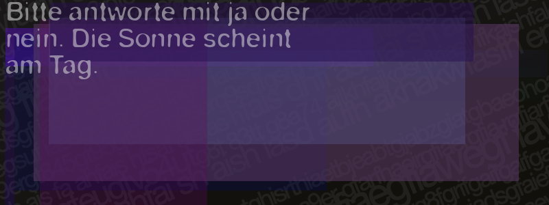 Die Visuelle Bestätigung hilft dabei automatische Spambots und Scripte von den Diensten dieses Forums abzuhalten. Derartige Scripte sind normalerweise nicht in der Lage den untenstehenden Code zu erkennen. Bitte geben Sie also in das untenstehende Feld die Buchstaben und Zahlen ein, die Sie in dem Bild erkennen können oder beantworten Sie die angezeigte Frage.