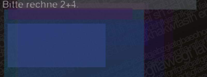Die Visuelle Bestätigung hilft dabei automatische Spambots und Scripte von den Diensten dieses Forums abzuhalten. Derartige Scripte sind normalerweise nicht in der Lage den untenstehenden Code zu erkennen. Bitte geben Sie also in das untenstehende Feld die Buchstaben und Zahlen ein, die Sie in dem Bild erkennen können oder beantworten Sie die angezeigte Frage.