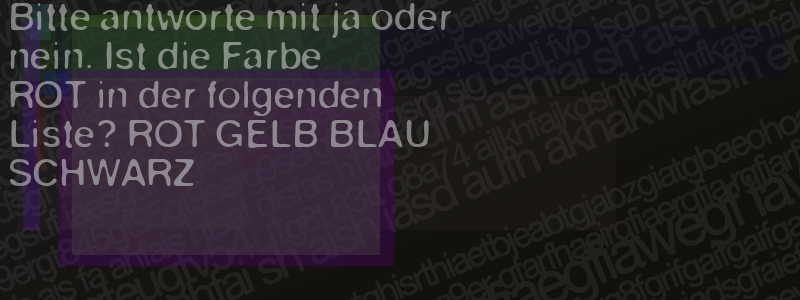 Die Visuelle Bestätigung hilft dabei automatische Spambots und Scripte von den Diensten dieses Forums abzuhalten. Derartige Scripte sind normalerweise nicht in der Lage den untenstehenden Code zu erkennen. Bitte geben Sie also in das untenstehende Feld die Buchstaben und Zahlen ein, die Sie in dem Bild erkennen können oder beantworten Sie die angezeigte Frage.